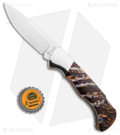 Made of 440C German stainless steel with a classic drop point shape. The nickle silver bolsters provide an elegant transition to the contoured genuine mammoth tooth scales. Smooth and comfortable in hand, the Mammoth is a pleasure to hold. A sturdy lock back design ensures a secure lockup. Whether you’re adding to a collection or looking for a gentleman’s folder, the Mammoth 1 is sure to not disappoint. Includes Certificate of Authenticity and presentation box.