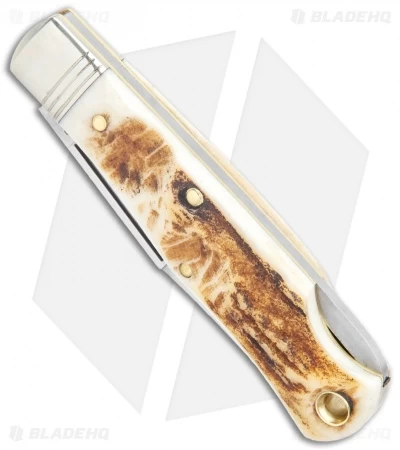 - Sambar Stag handle scales with nickel silver bosters and shield.