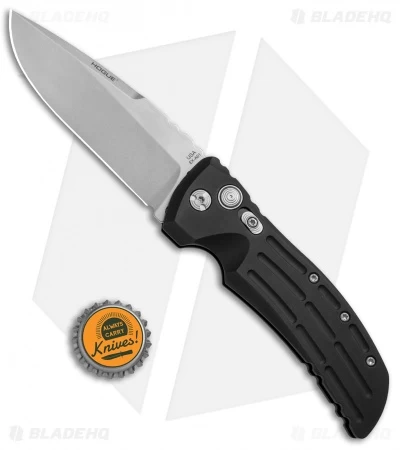 Hogue Knives’ EX01 Tactical Folder from their Extreme Series is now available as an automatic opening knife. The action is smooth and lockup tight via the button lock mechanism. There is also a front mounted safety to lock the blade. The 6061-T6 aluminum handle is black anodized. The front of the handle has grooves for grip strength and a large reversible pocket clip on back for tip-down or up carry. The drop point style 154-CM tactical stonewash finished blade has a razor sharp plain edge.