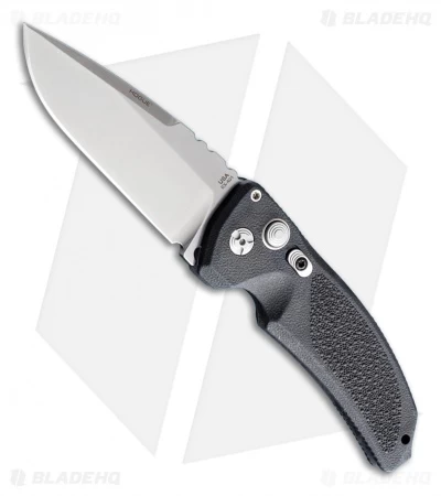 This EXA03 automatic knife has a 3.5″ Drop Point blade and Black polymer handle.