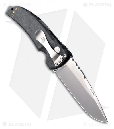 The Hogue EX-A03 Auto is an Allen Elishewitz designed knife that features a single-piece PPS polymer frame with molded/nested steel bolster plates. The handle has a raised grip patch on front, jimping up top, and a light texture elsewhere. There is a skull crusher at the base of the handle and a reversible tip-up/down carry pocket clip. Push button lock and the sliding safety. The stonewash finished 154-CM steel blade has confidence inspiring action and lockup.