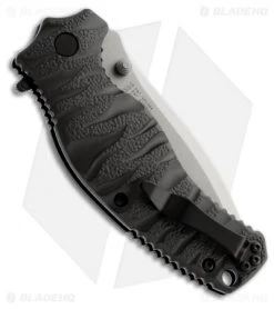 The HTM Gun Hammer is a spring assisted knife modeled after Darrel Ralph’s custom design. It has an ergonomic tactical (ETAC) grip handle, 3D machined from aircraft grade aluminum with a military Type III hard coat. The blade is premium S30V stainless steel with a stonewashed finish. Item comes with a padded black nylon pouch.
