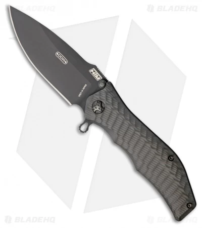 The HTM Gun Hammer is a spring assisted knife modeled after Darrel Ralph’s custom design. It has an ergonomic tactical (ETAC) grip handle, 3D machined from aircraft grade aluminum with a military Type III hard coat. The blade is premium S30V stainless steel with a DLC finish. Item comes with a padded black nylon pouch.