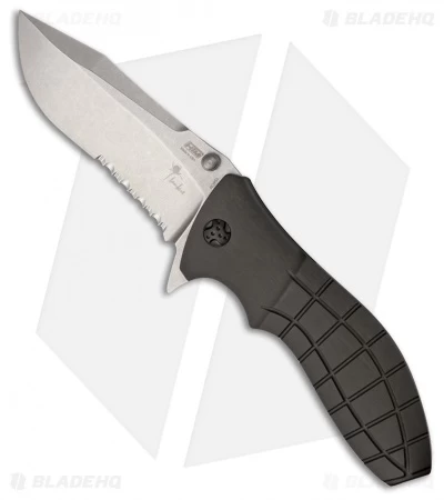 The Snap is a Kirby Lambert designed flipper from HTM Knives. It has a hard coated aircraft aluminum handle, machined with a unique grenade grip pattern. This model includes a tip-up carry pocket clip and a spring assisted mechanism for quick and precise opening action. The Snap has a great feel in hand and it’s perfect for tactical or EDC carry.