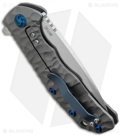 The Kizer Shoal offers a stunning Kim Ning design, featuring CNC milled titanium handle scales and blue anodized hardware. A stainless blade made from CPM-S35VN steel comes in a streamlined drop point style with a satin finish. It is equipped with a titanium pocket clip and the smooth bearing pivots that Kizer knives are known for. The Kizer Shoal provides a comfortable, ergonomic design that is the perfect size for EDC or tactical use.