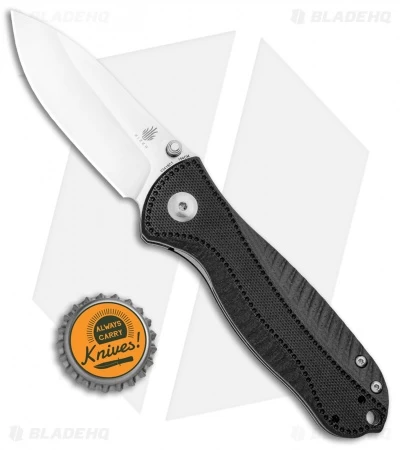 - Textured G-10 handle scales provide a secure, ergonomic grip.