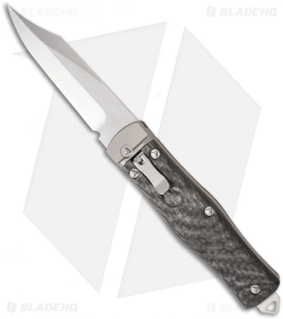Microtech OSS Cobra Bowie Knife Auto Carbon Fiber (3.75″ Stonewash Plain) 137-10