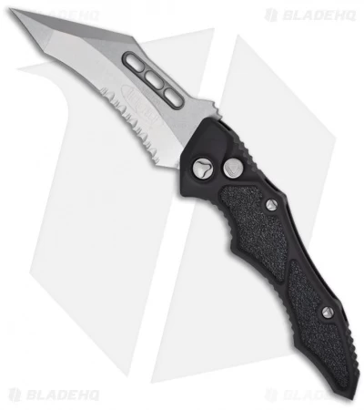 The Vector knife from Microtech has always been a favorite among collectors and has just been revived as a 2011 model! The Microtech Vector automatic knife sports a stonewash finished S35-VN stainless steel blade with a serrated edge. The black finished aluminum handle has textured grip inserts on front. The frame is tapered front to back with an open build and barrel spacers, very robust! Includes pocket clip.