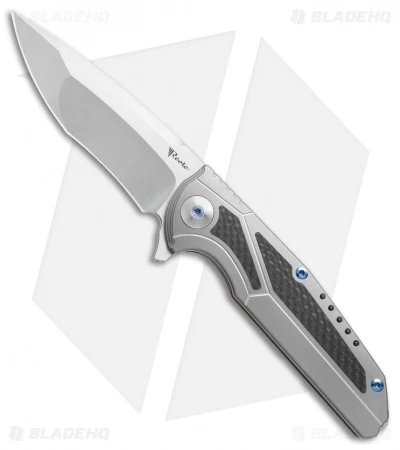 The Reate K-4 features a healthy balance of hard angles and flowing curves in a package that begs to be carried. It sports a recurve blade with a compound grind and swedge. The frame lock handle is made from titanium with a lanyard cut backspacer and ceramic ball accents. The K-4 comes complete with a milled titanium pocket clip for secure everyday carry.