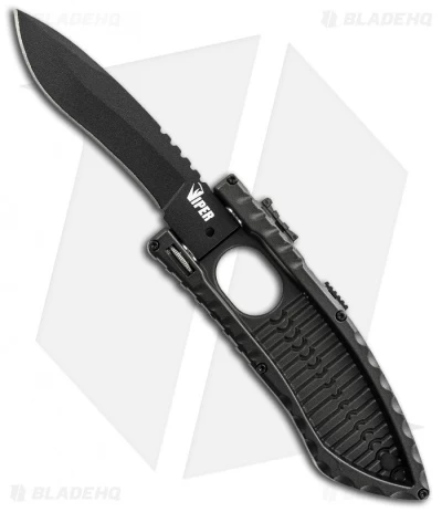 The SCHSA2DB Large Viper Side Assist knife features a black finished drop point blade with a plain edge and a black aluminum handle.