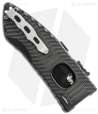 The Schrade Viper series Side Assist knife has a unique opening action that deploys the blade out the side of the handle. The back side of the handle has a hole to nudge the blade, which activates the assisted opening mechanism. To release the blade simply slide the top mounted button and return blade to the closed position. There is a safety as well, although it is stiff. The Viper Side Assist knife has a tip-down carry pocket clip.