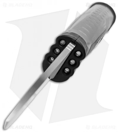 The Blade Light from SOG Knife & Tool features a patent pending technology that employs six intensely bright LED lights (three on each side of the blade). The lights have a measured output of 37 lumens, enough to help sharpen a stick for marshmallows, light up a late night cookstove or help illuminate the way to the outhouse. The fixed blade – made of 8CR13MOV stainless steel – is anchored to a glass reinforced nylon handle. Two AAA batteries will provide more than four hours of burntime for the LED lights. A sheath is included.