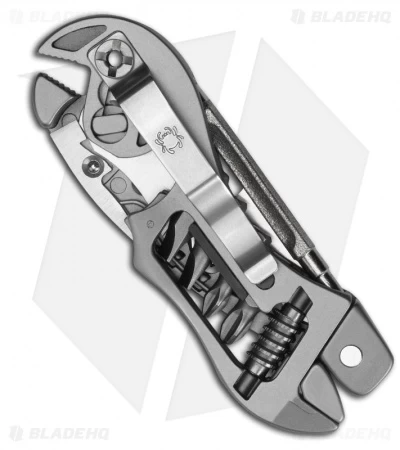 The T01 SpydeRench includes a real Spyderco knife with a locking full-sized, one-hand open/close knife blade and pocket clip. Investment-cast 17-4ph corrosion resistant stainless steel body. Features include: adjustable crescent wrench, a 2-setting slip joint pliers, a set of four screwdriver bits (including: a #2 and #3 Phillips-head as well as a #1 and #2 flat-head), and a diamond-coated file featuring a concave, convex and flat sharpening surface.