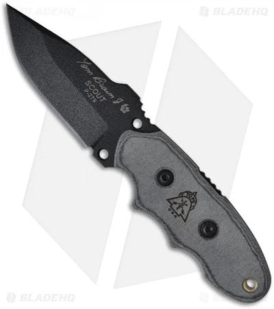 The Tom Brown Tracker Scout Knife was designed by Tom Brown. It features a full tang spear point blade with a tactical black coating. The handle has tough black linen Micarta scales. This knife is perfect for some of the finer and simpler camp chores. Wear the Scout Companion Knife by itself, or as an addition to the Tracker Knife.