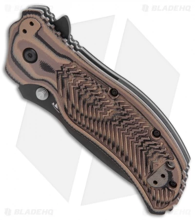 - Aftermarket “Hyena Brown” G-10 front handle scale.